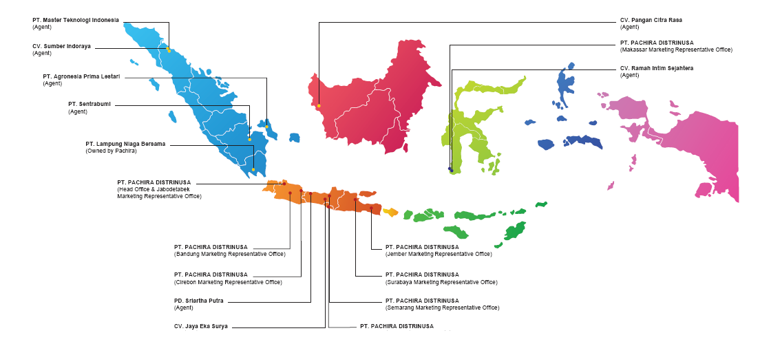 To optimize distribution, we have branches and several agents and distributors which is located in almost all regions of Indonesia.